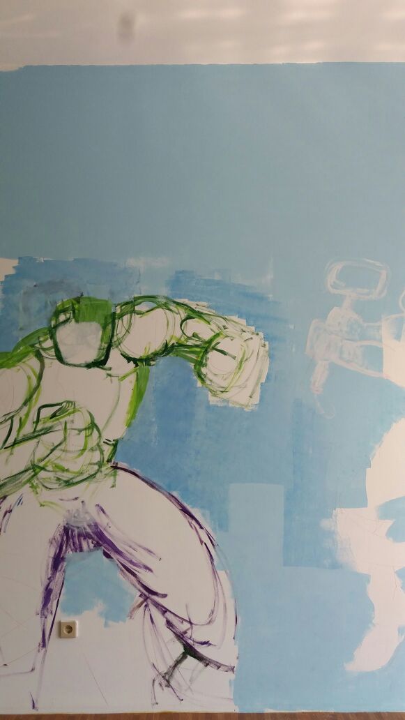 Lalu, superheronya saya pilih The Avengers , karena keempat tokoh tersebut memiliki karakter yang menarik untuk dilukis di atas dinding.